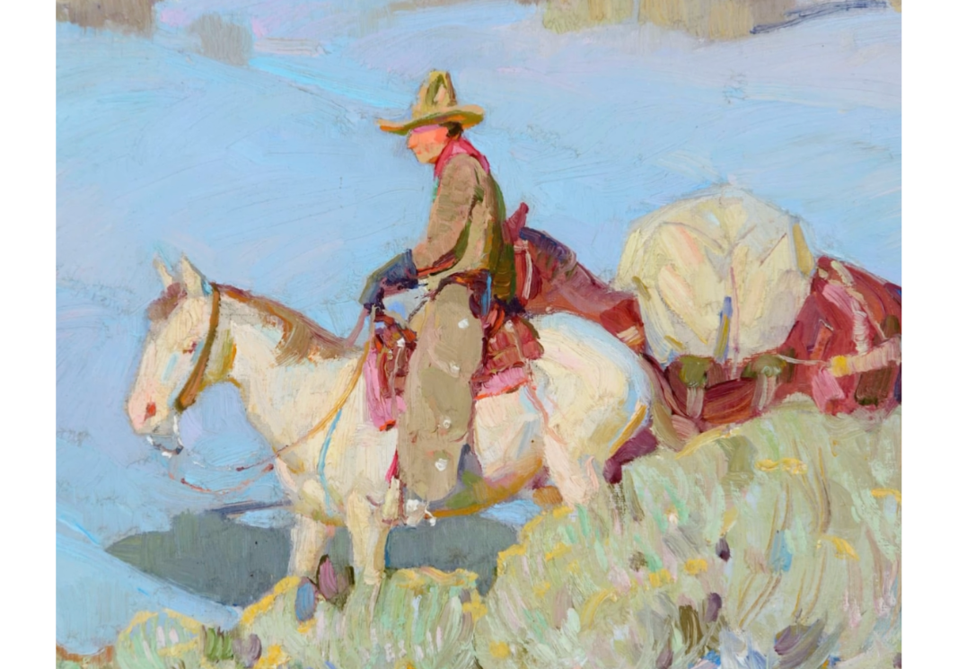 William Herbert Dunton’s approach also highlights painterly power. He suggests, rather than spells out, his forms. A chamisa bush, for instance, is defined just enough for the viewer’s mind to fill in the gaps. This invites the audience into the painting process and allows them to participate. Charles Movalli once wrote, “A highly rendered painting is as alive in a dark closet as it is on a wall because it doesn’t require the viewer to complete it.” Suggestion is confidence. Suggestion is trust in your viewer.