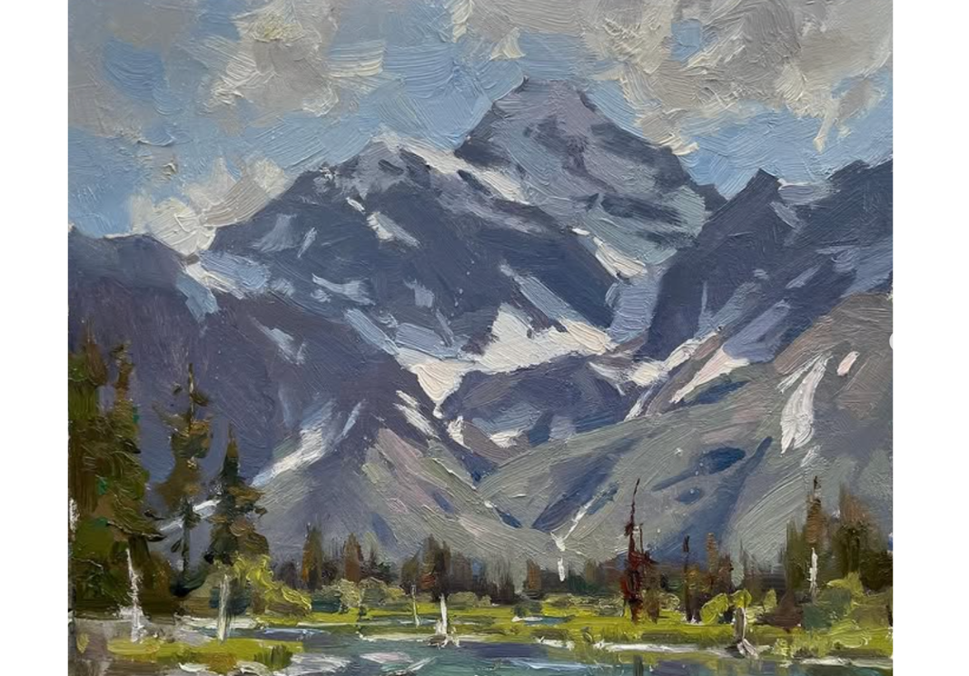 For example, in alpine settings, Mitch often sees skies that are darker in value and carry more purple. In that case, a warmer blue like ultramarine may be more useful than cobalt. On other days, when the sky feels crisp and cool, cobalt may be the better choice.